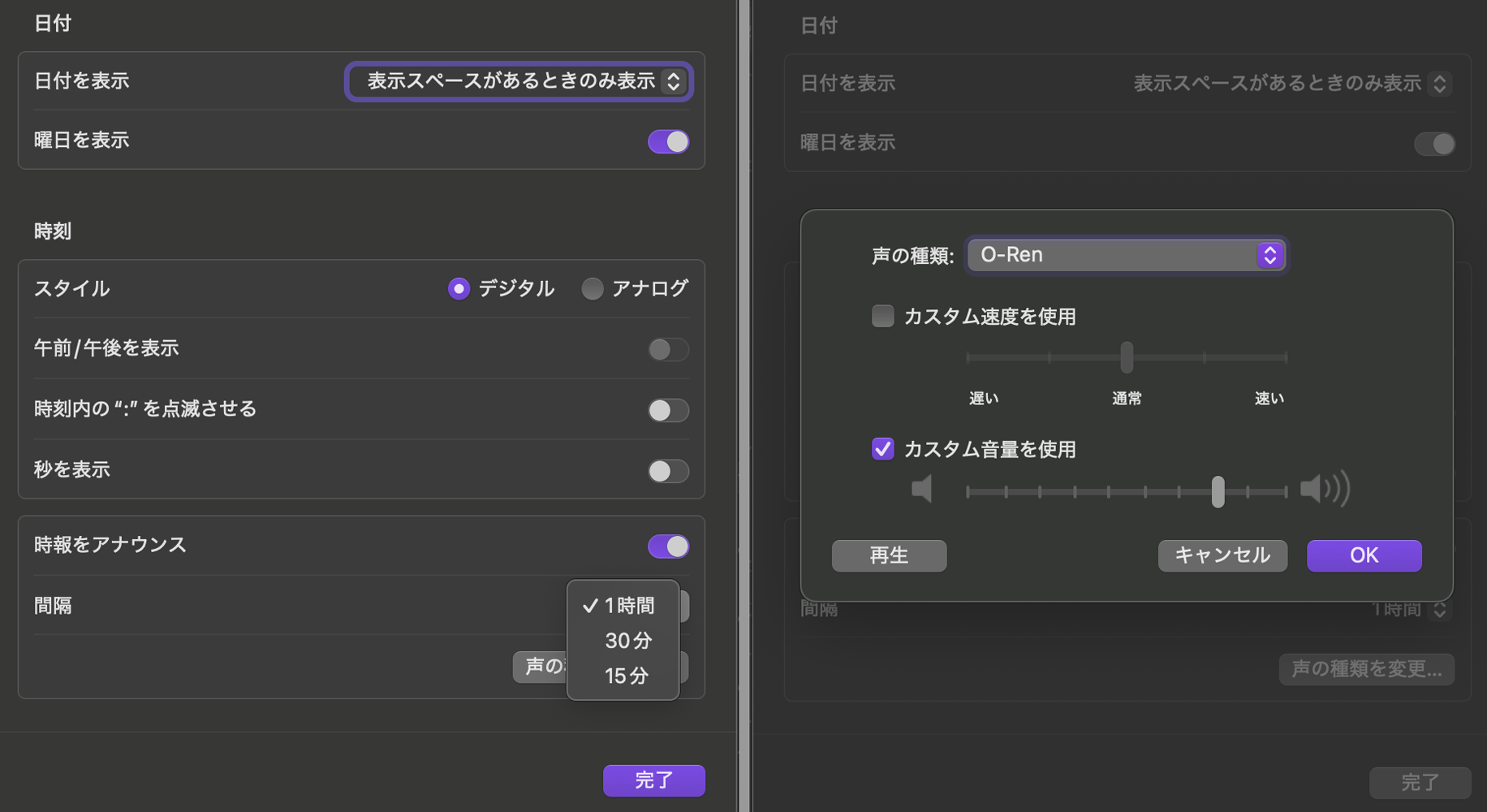 macOS Sequoia|"時報をアナウンス"の間隔を1時間以上に変更可能でしょうか?