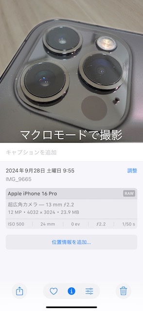 iPhone16 Proの仕様では48MPでマクロ撮影できるとありますが、