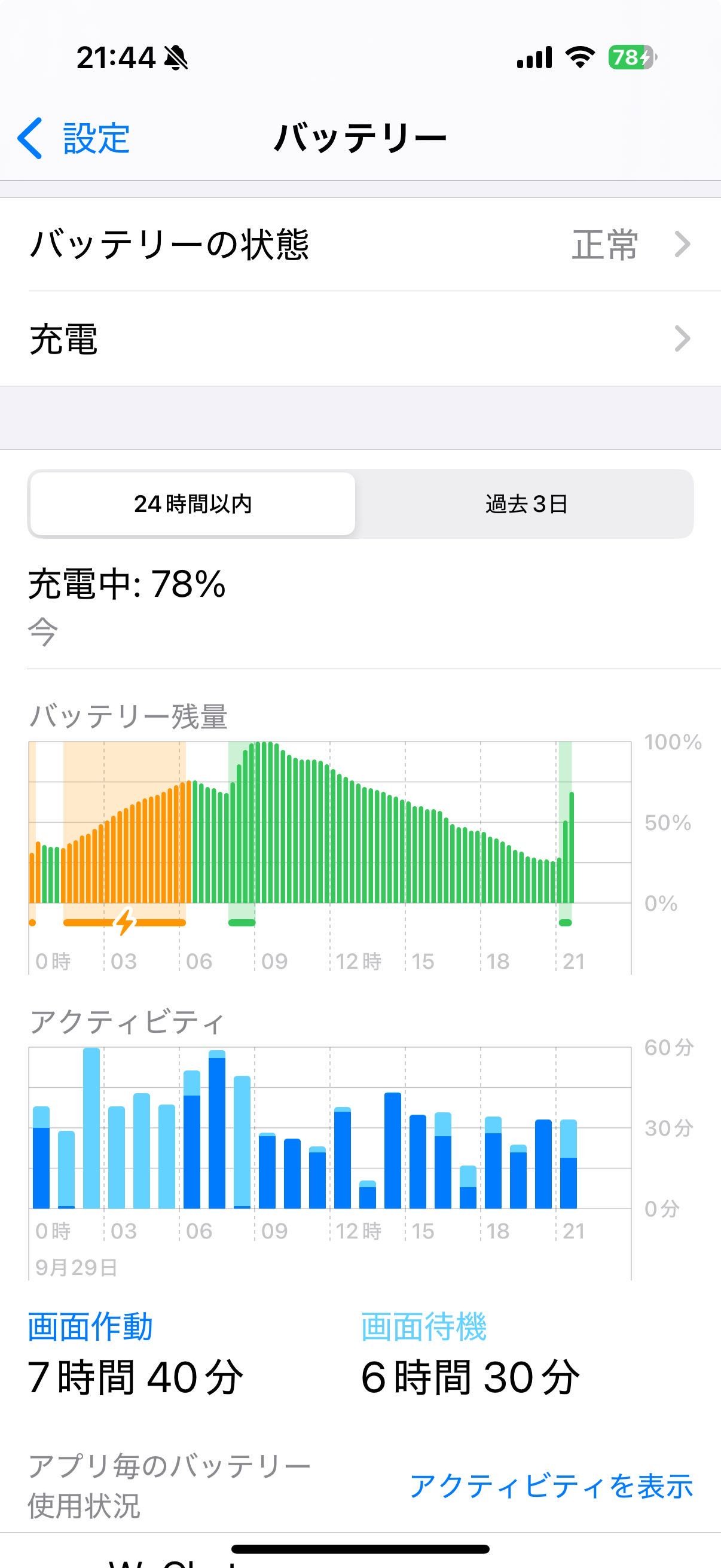 乗り換え前の最大容量73%のiphone11より、バッテリー減りが激しいです。