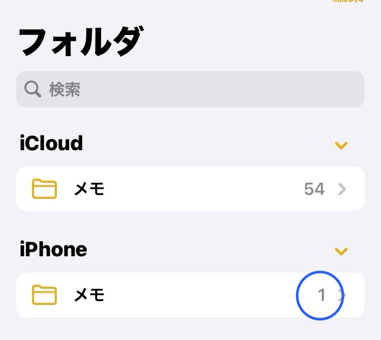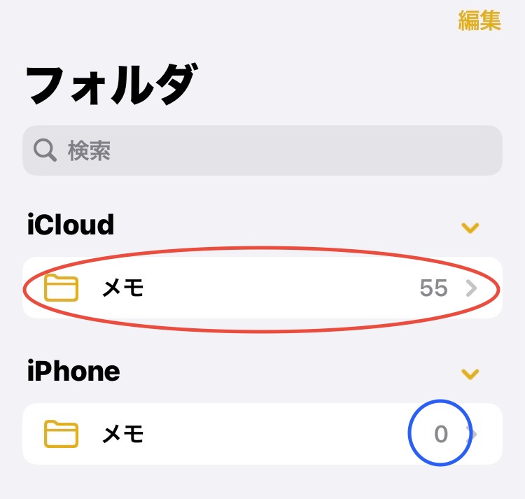 ・ メモアカウントにiCloudとiPhoneがあることを確認する。