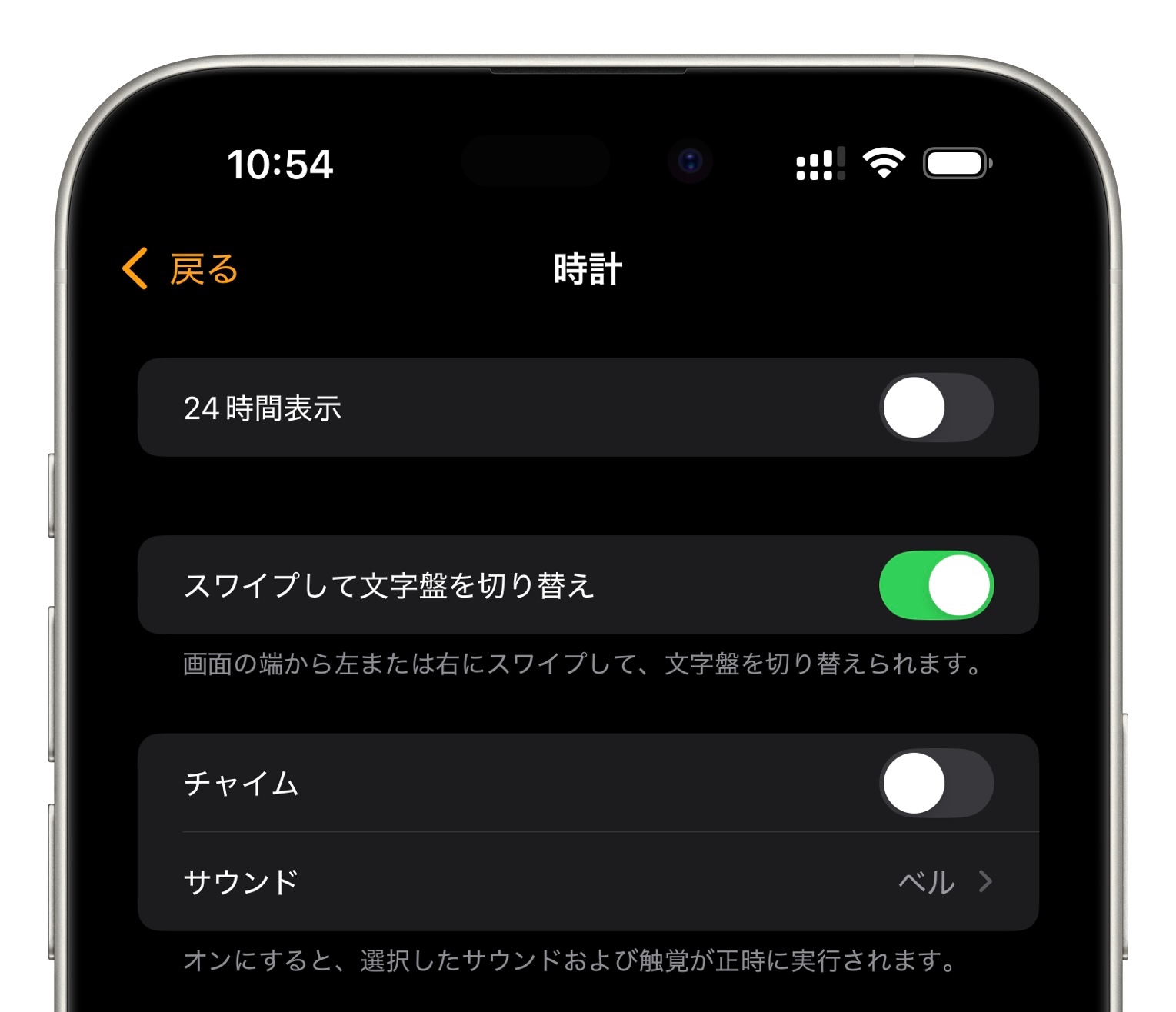 Apple Watch 10, watchOS 11 - 時計アプリの設定で「24時間表示」が勝手にオンになる
