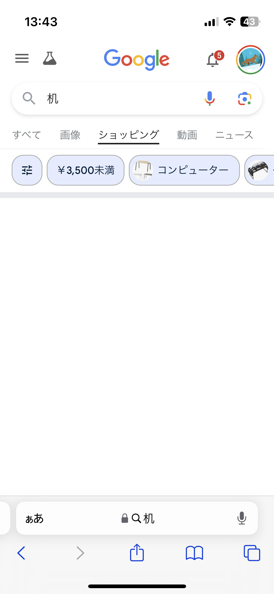 数日前から突然Googleのショッピング画面に何も表示されなくなりました。
