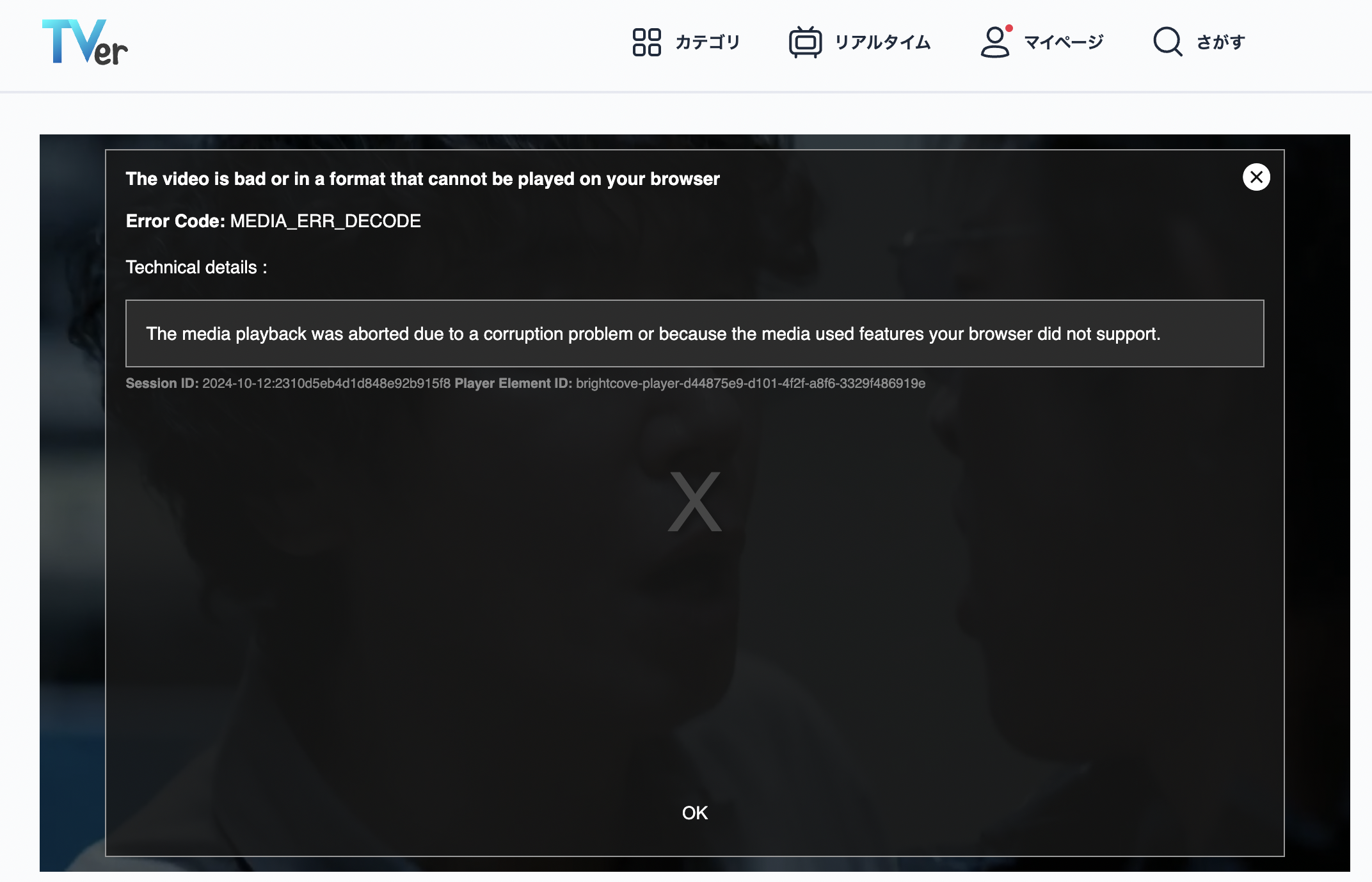 その上で、「この動画は問題があるか、このブラウザでは再生できない形式(フォーマット)の動画です。」と表示されているのだから、推奨ブラウザ以外を利用しているなら、ブラウザを変更してください。