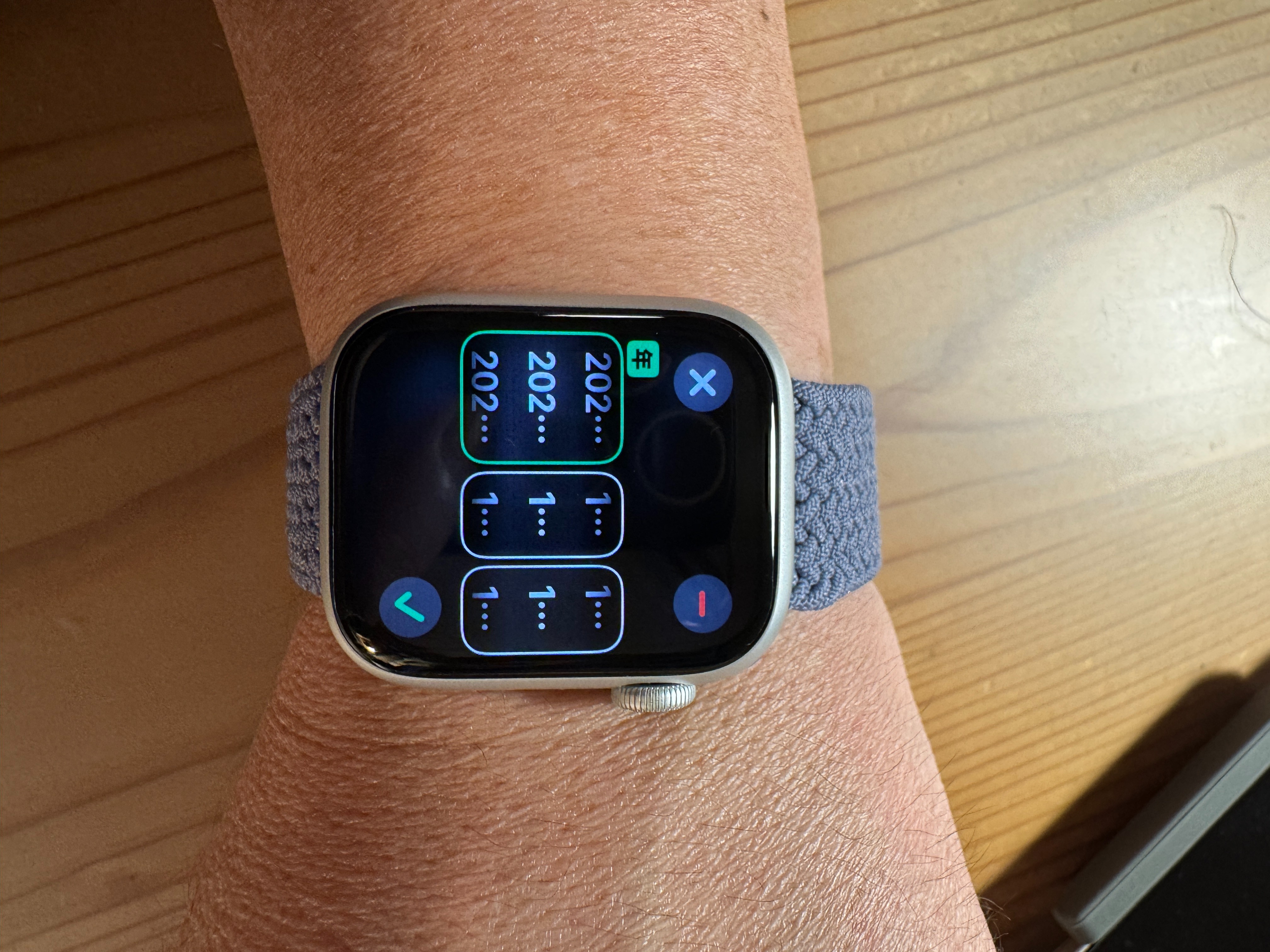 質問というより報告である。AppleWatchの標準アプリであるリマインダーにて、リマインダーの内容を編集する画面で日時を変更する画面が全く機能していない。年月日の下一桁が表示されないため変更のしようがない。添付したキャプチャは、文字を太くし、少し大きめの大きさに変更しているが、標準の太さで最小文字サイズに変更しても改善できない。早急な改善を希望する。機種はAppleWatch8 41mm。