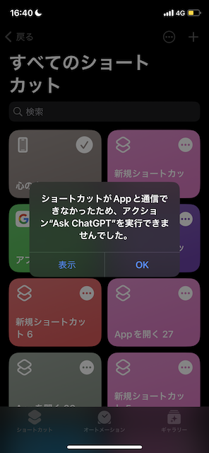 充電をした際chat GPTからメッセージがくるというアクションを実行したいのですが、写真のようなメッセージが出てきてしまい、どうしても実行できません。