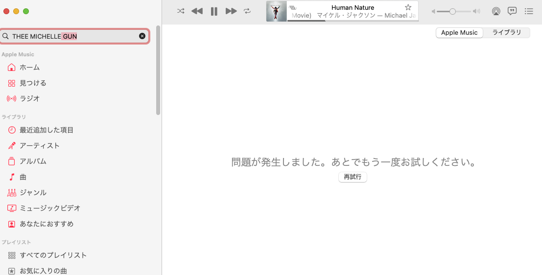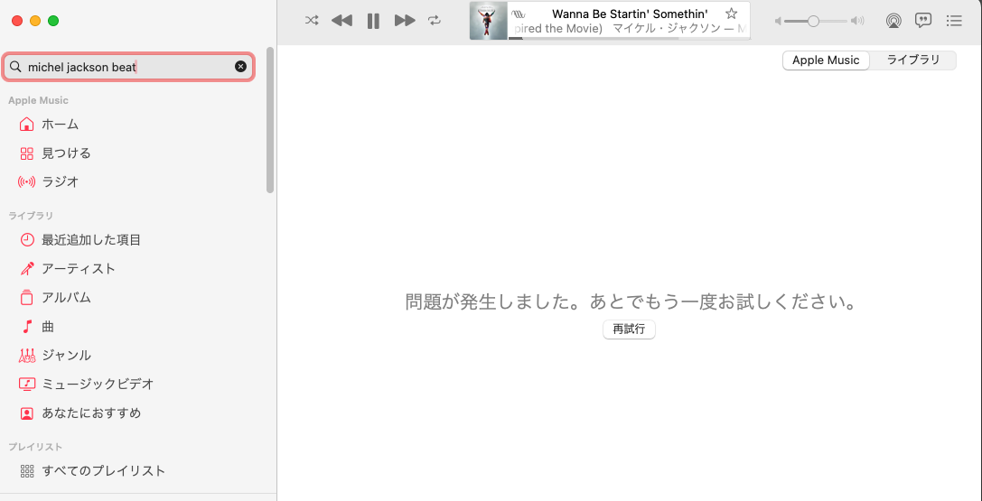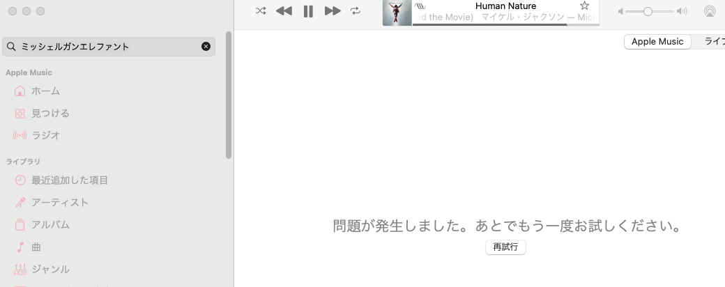 最近になってAppleMusicの検索時にエラーが出ることが多くなりました。