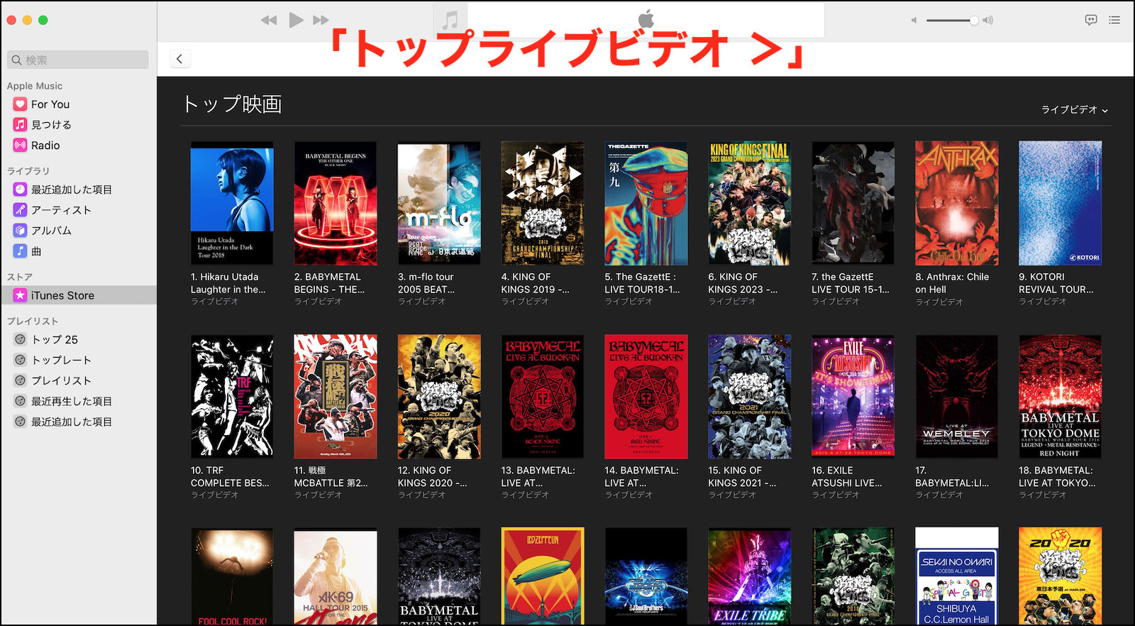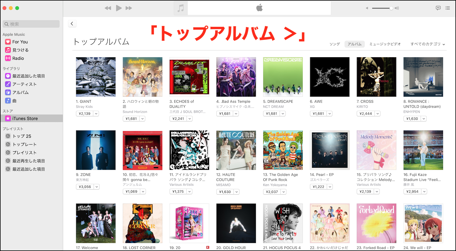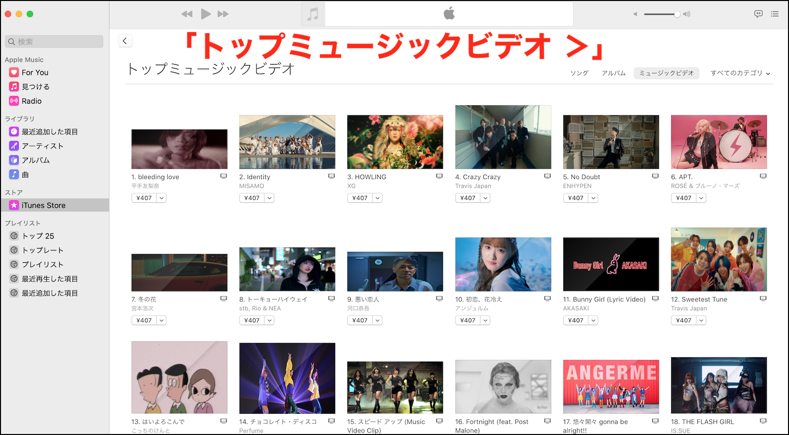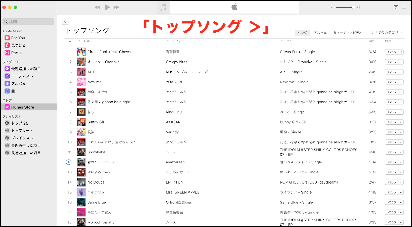 iTunes Storeのトップソングが表示されなくなりました。