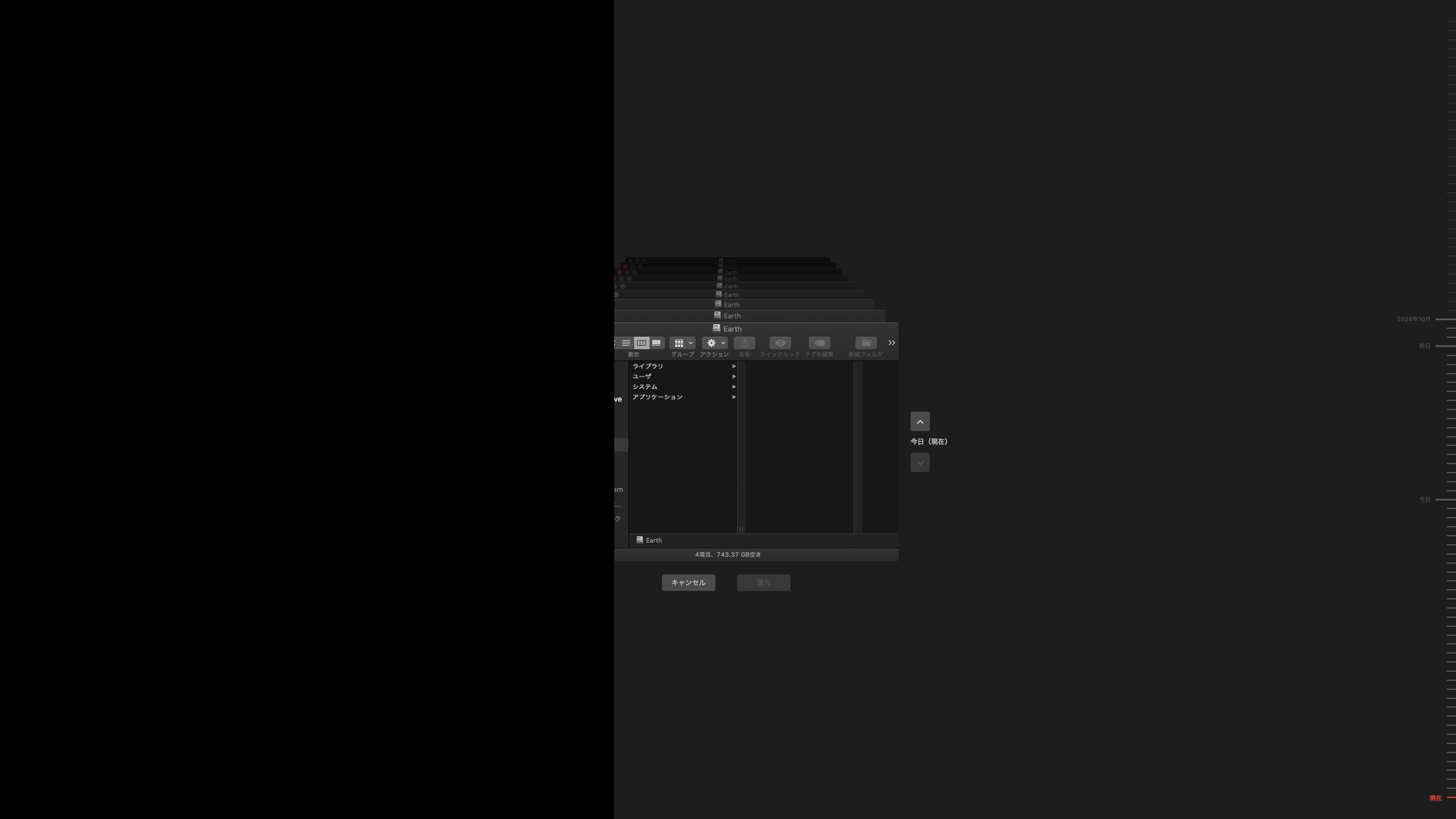 TimeMachineの検索画面が切れる