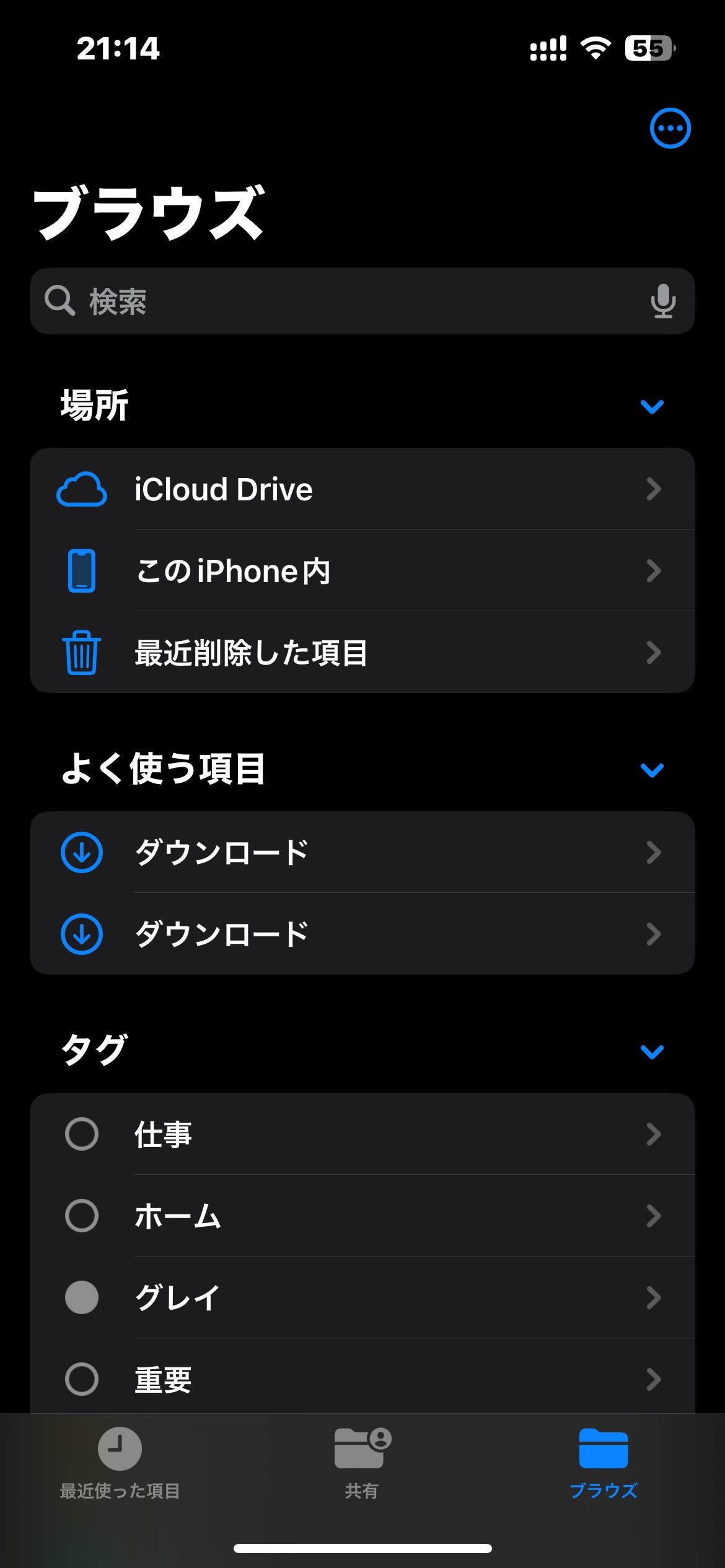 ダウンロードフォルダは、「このiPhone内」「iCloud Drive」「よく使う項目」のどこにも表示されません。