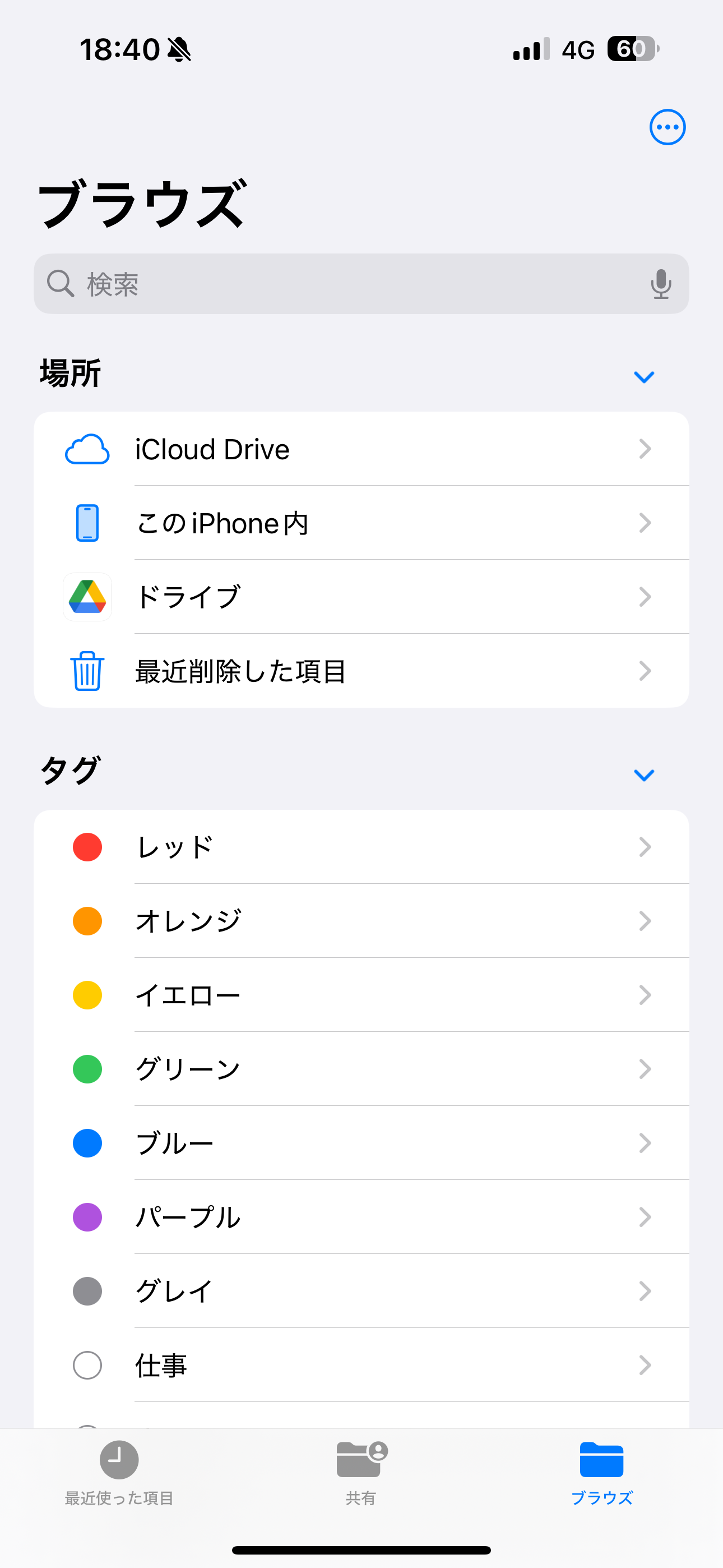 「Googleドライブ」のファイルやフォルダは表示されているが、「このiPhone内」と「iCloud drive」のファイルやフォルダが表示されません。