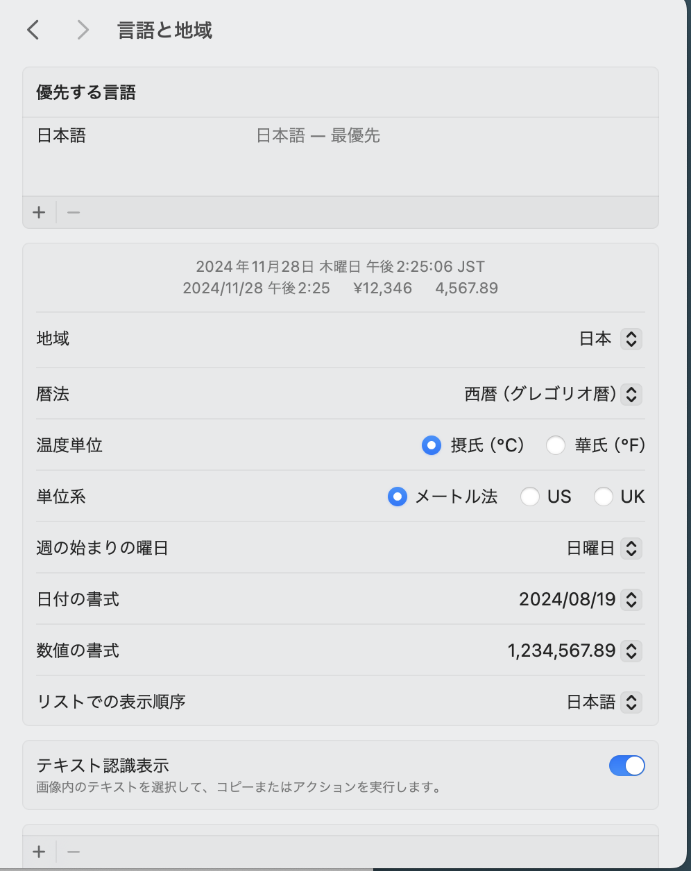 ネットを検索すると「言語と地域」も確認するようにとありますが,sonomaではここに時刻の設定はなさそうです。