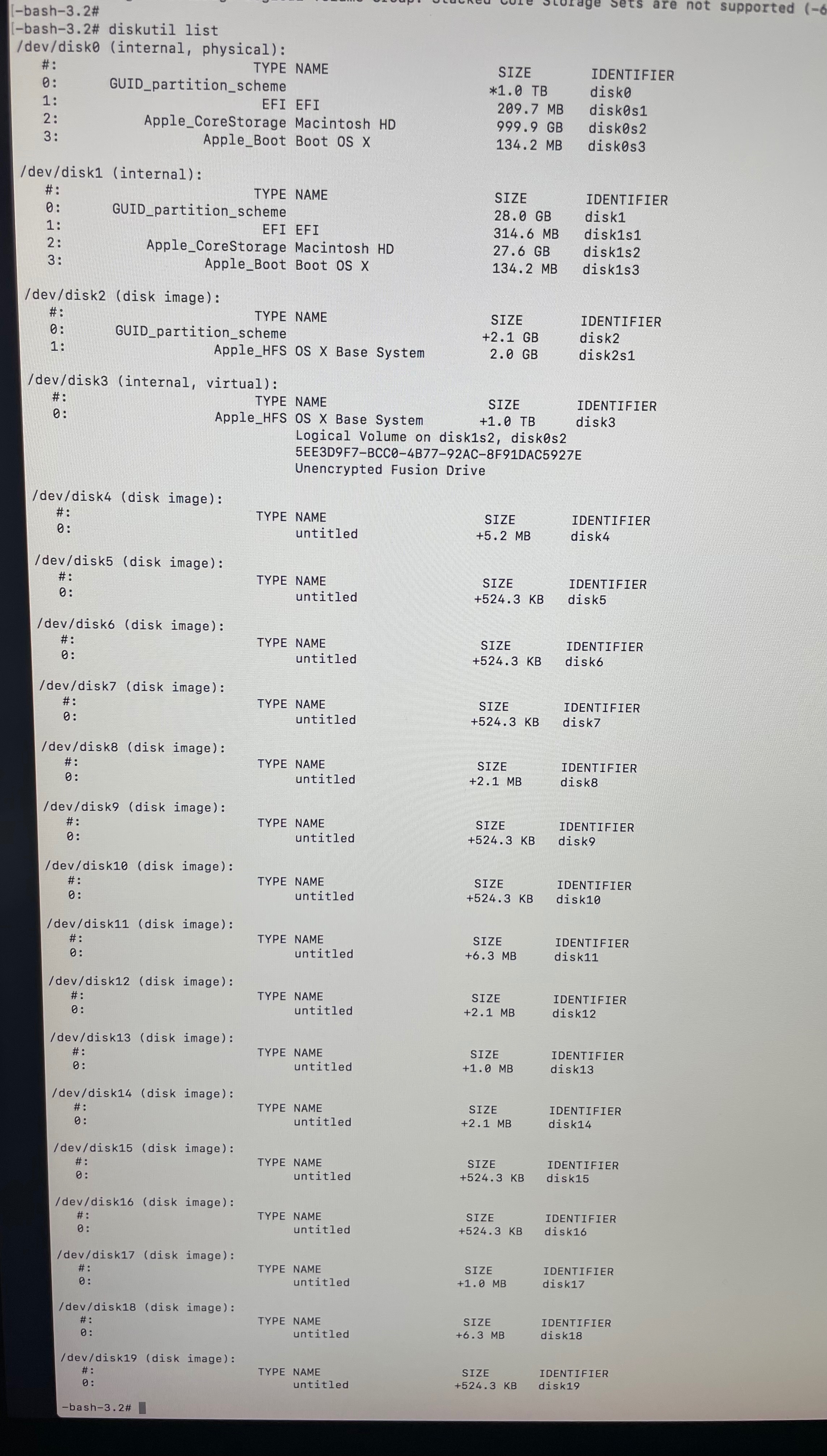 今、diskutil listの結果を見ました。これによると、SSDは28GBのものですね。これをdisk1としてFusionDriveを作成できます。