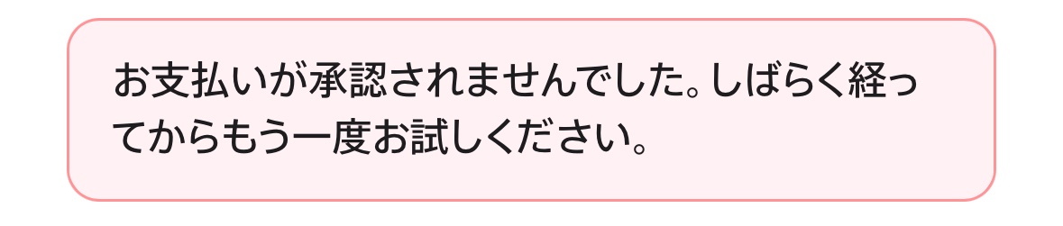 お支払いが承認されませんでした。しばらく経ってからもう一度お試しください。