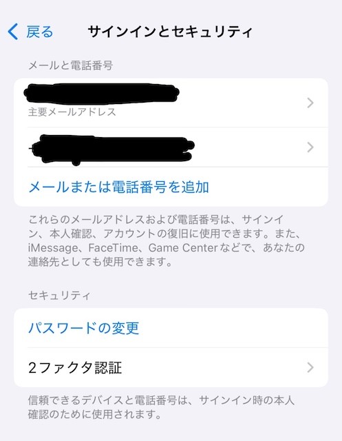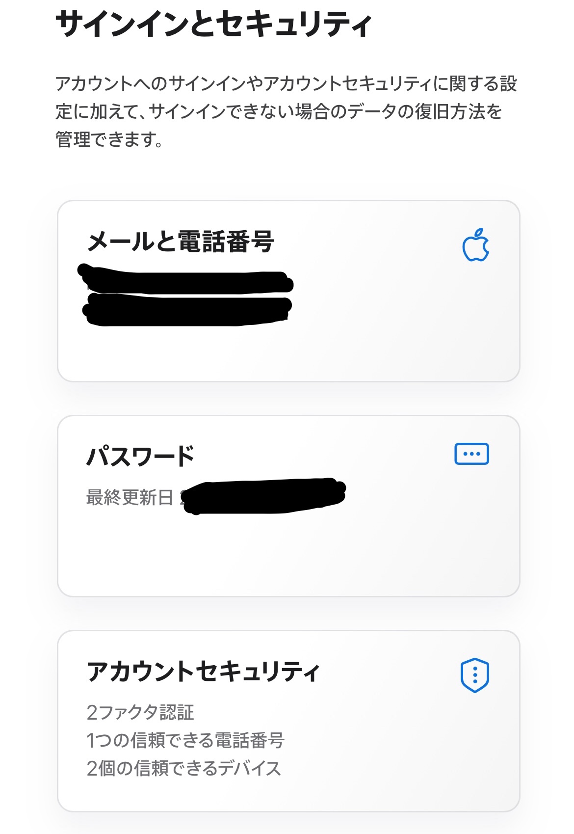 ブラウザからApple accountにサインインして確認したところ、やはり2ファクタ認証と表示されていました。
