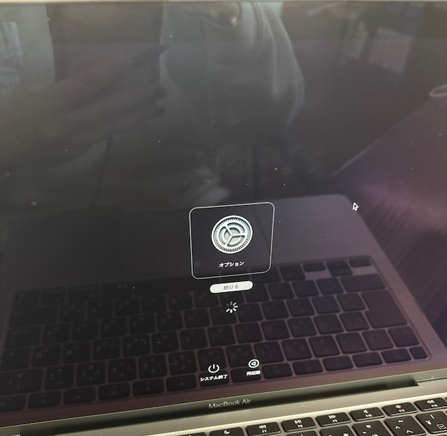調べたら再起動時にCommand+Rでリカバリーモードに入り、「ディスクユーティリティ」を選択すると出ましたが、何度試しても画像のオプションの画面に戻ってしまいます。