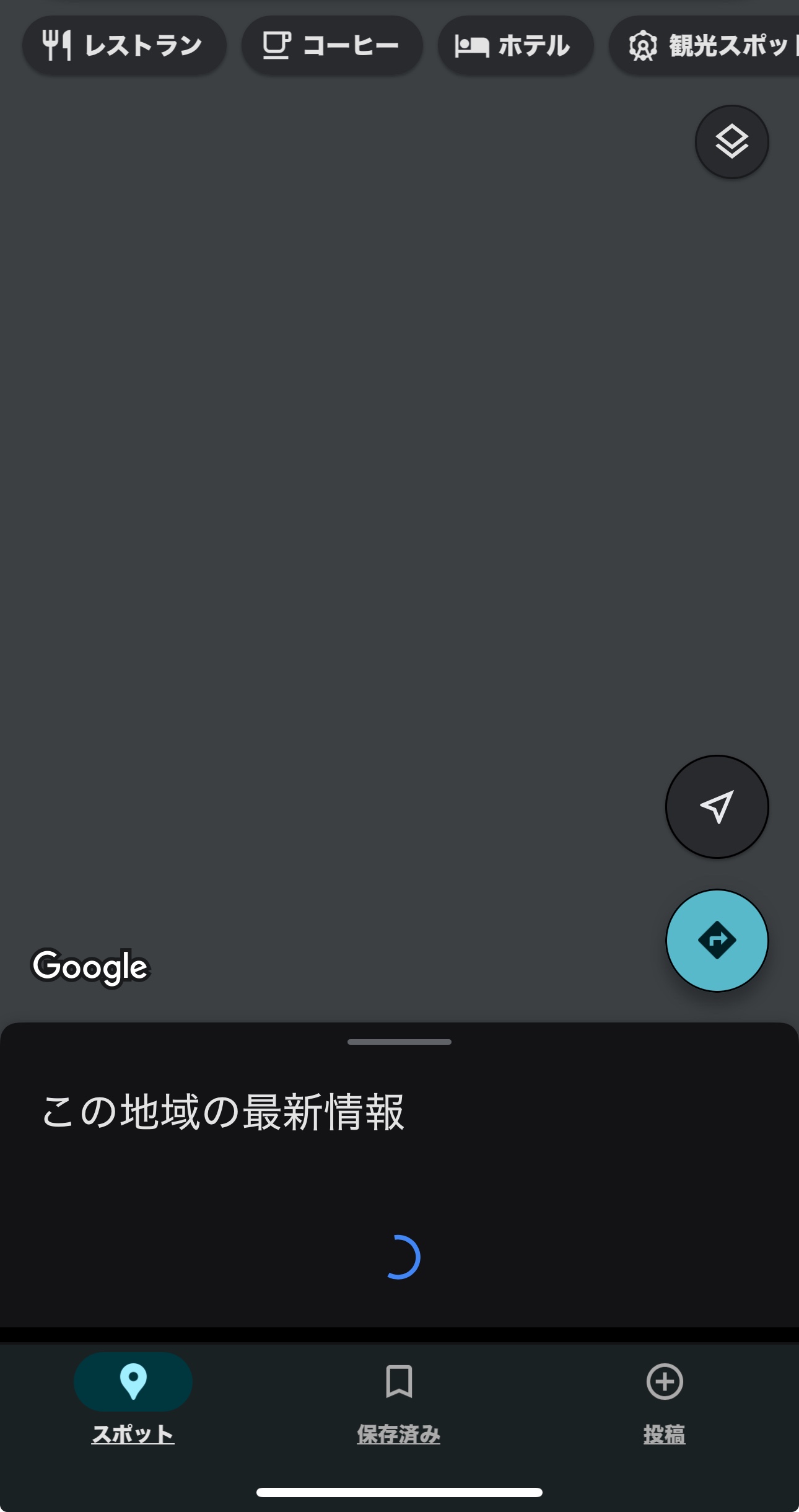 ・Googleマップが真っ暗になり何も表示されなくなる(画像参照)