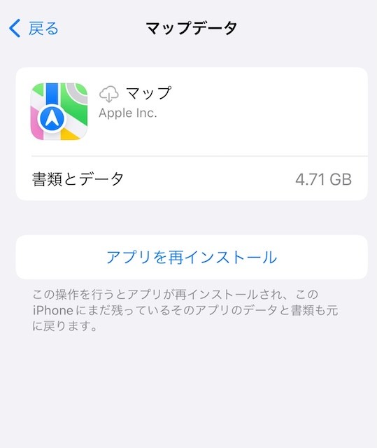 iPhoneに既存で入っていたマップデータの容量が空けられなくて困っています。アプリの容量の削除ができない、それどころかどんどん増えてくるというものです。