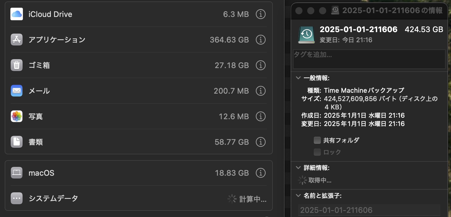 2024-12-30-225408 変更日:昨日22:54 サイズ:— 種類:Time Machine バックアップ