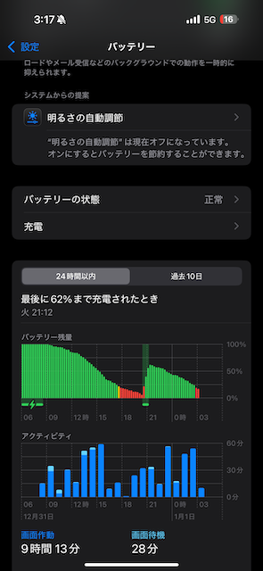 iPhone16ProMaxほぼ新品で買って2週間使用しておりますが、バッテリーの減りが早い様な気がするのですがこれは、正常でしょうか?