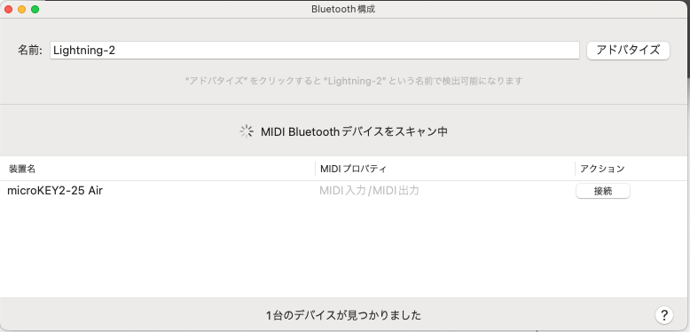 MacBook AirでBluetooth MIDI Keyboardのペアリングできない