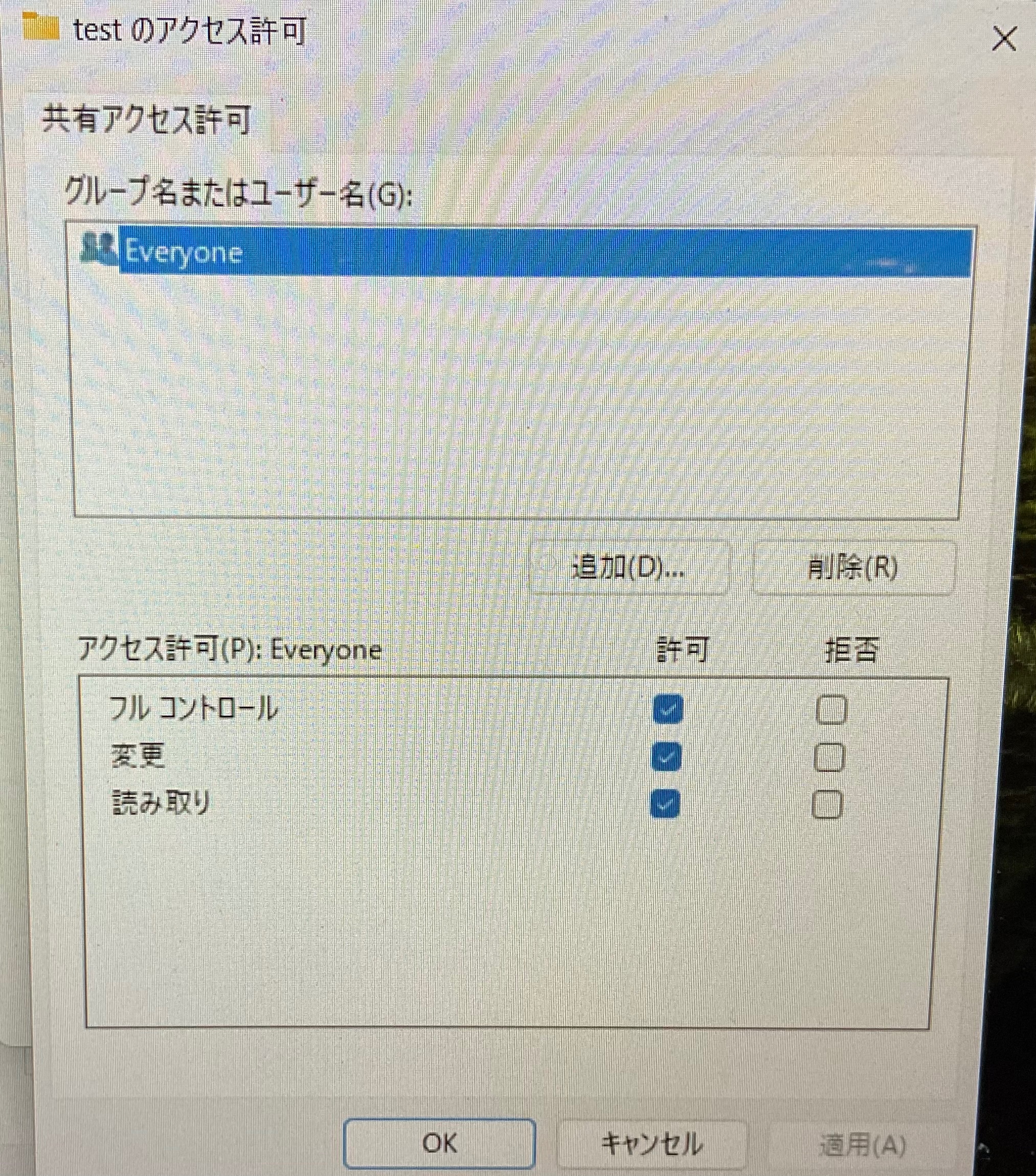 Win側ではアクセス許可をフル コントロールにしてますが、何回やってもできません。