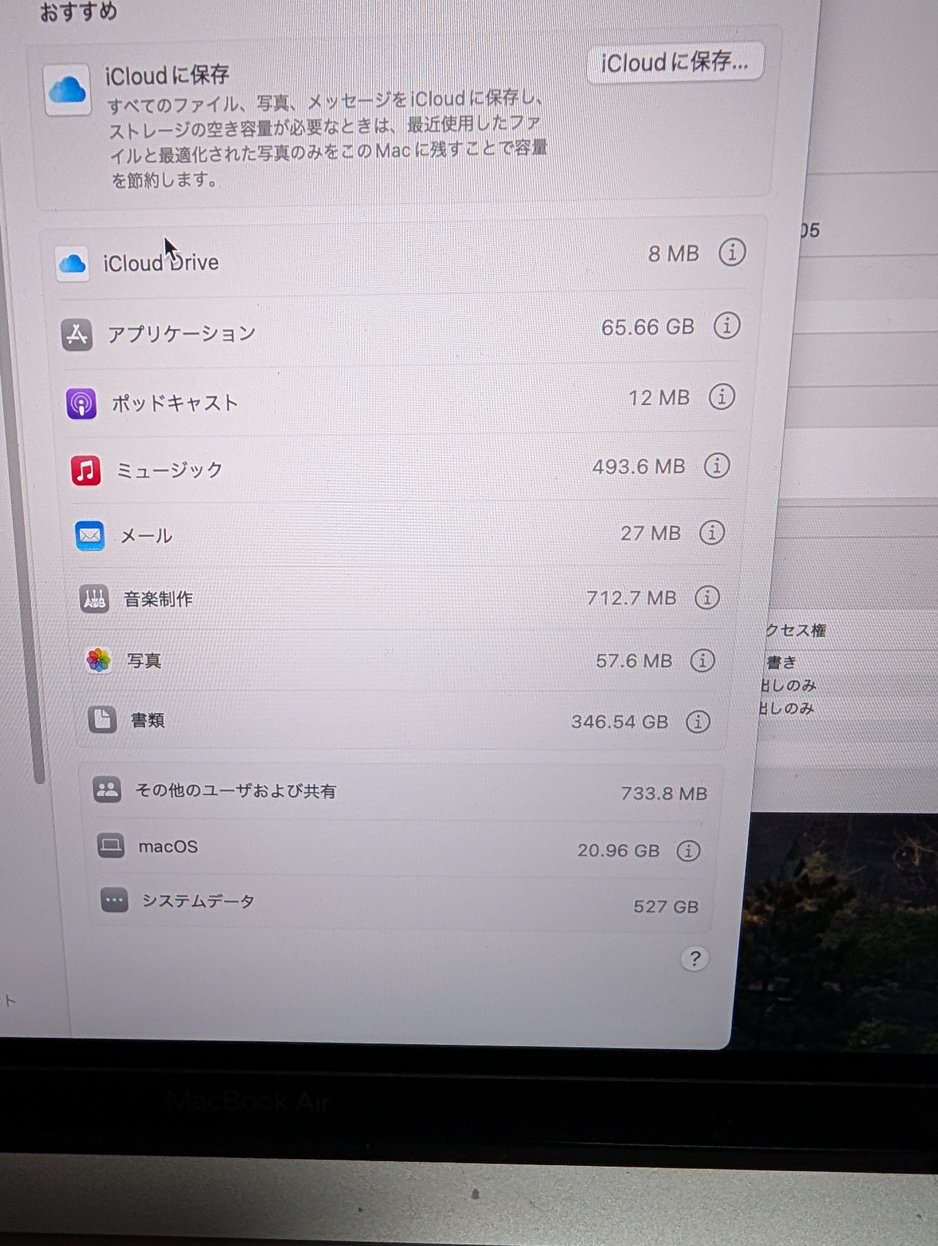 システムデータだけで527gb使っており