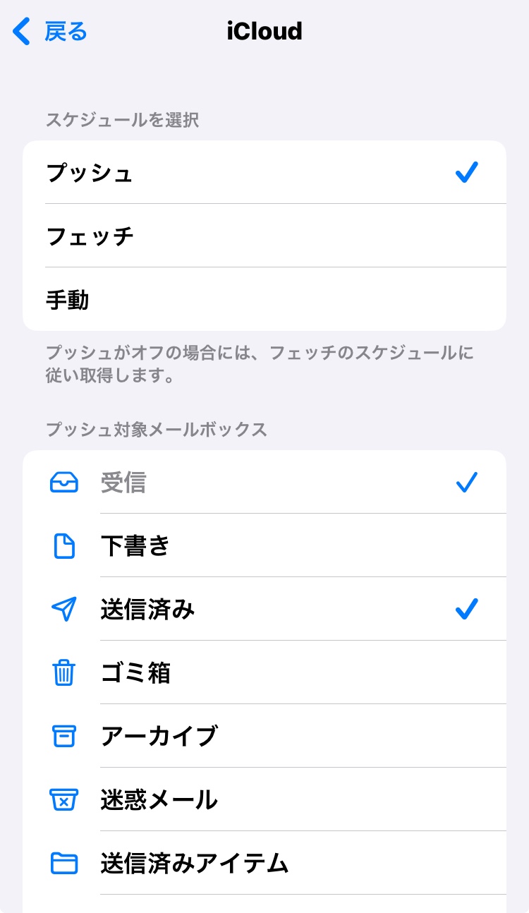 また、その下にある iCloud>「プッシュ」 になっていますか?
