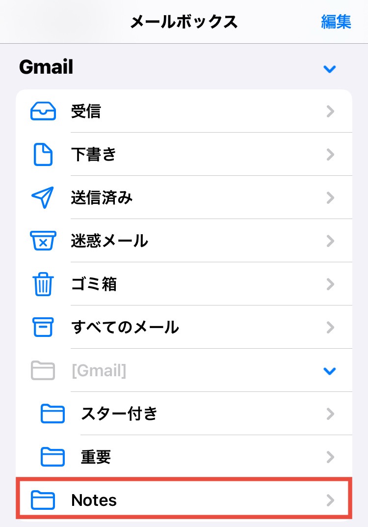 もしかしたら、標準メールアプリのNotesフォルダーは、メモアプリと関連があるのかもしれません。
