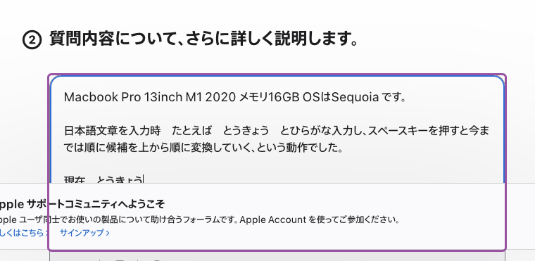 Mac - 入力変換時、スペースキーを押すと枠線が出てフォーカスが変わる