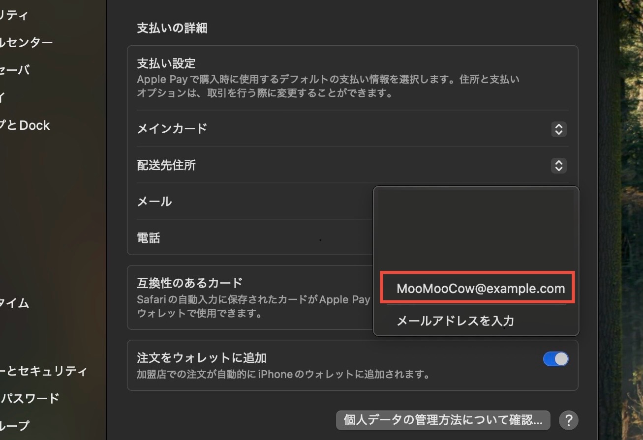 システム設定→「ウォレットとApple Pay」の画面にて、配送先住所やメール、電話番号をクリックしたときに出る候補を、削除する方法についてご教授お願いします。追加することは簡単にできる一方で、削除できず、下図のように不要な情報が残り続けます。