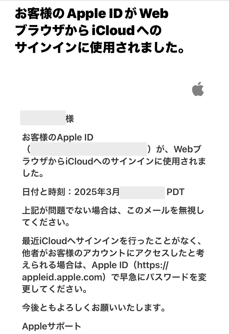 これは詐欺メールなのか、正式なAppleからのメールなのかどちらでしょうか。
