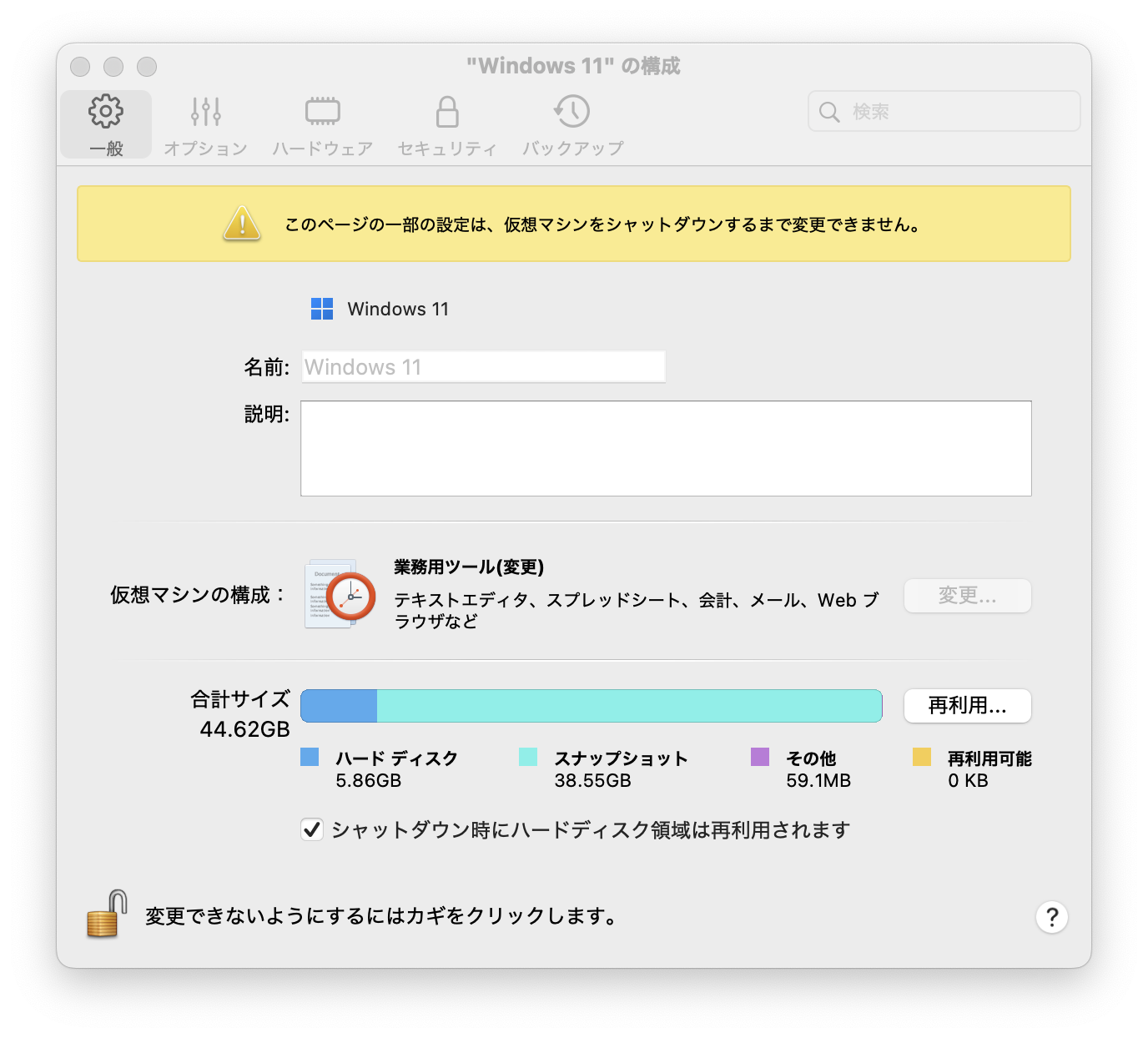 Windows 11 ARMの仮想マシンのストレージサイズは、大きなアプリを入れなければ40GB程度です。