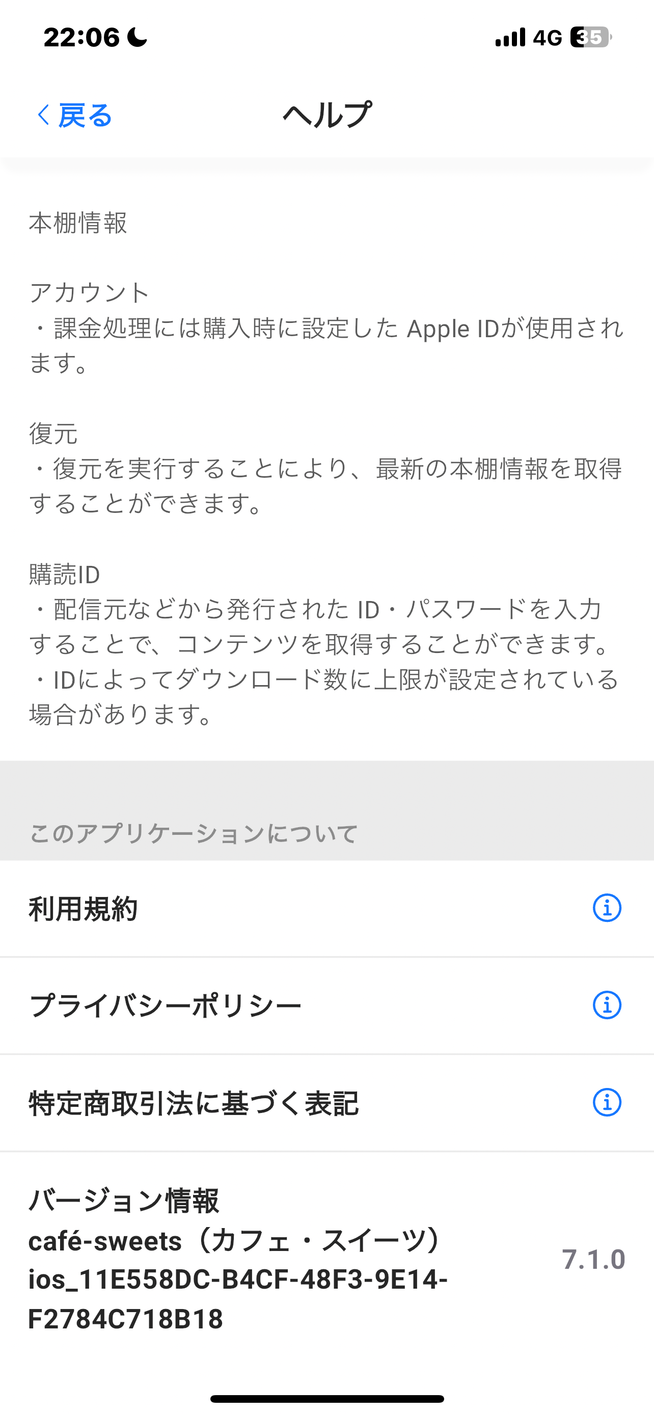 また、「café-sweets(カフェ・スイーツ)」のレビュー(2025/03/14 及び 2025/03/19)に、「アップデートしたら何も見れなくなった」や「アップデート後に利用規約が表示され、承認をしないと開かなくなった」旨の記載が有りますので、アプリ側の問題である可能性も有りますね。