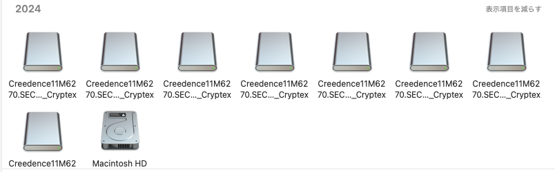 とはいえ、ユーザーにとって通常関係のないイメージが大量にマウントされるのはどう考えても健全ではないですし、いったいアップルは何しているのだろうと不信感しかありませんねぇ..