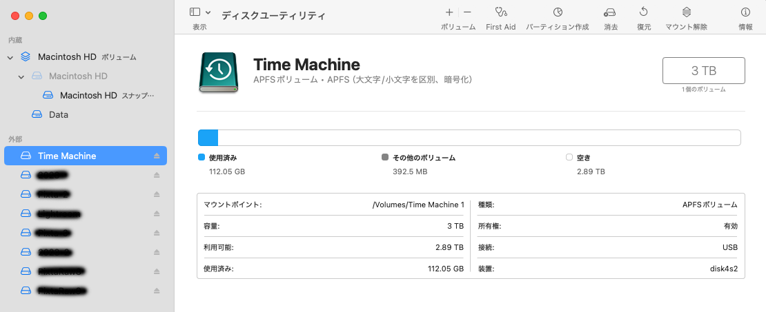 他に外付けのHDも繋げていますが、タイムマシンでは除外するように設定してあるのですが、