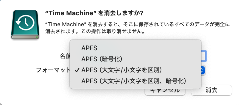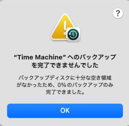 以前のタイムマシンをそのまま使おうとしたらメモリーが足りないと出たので