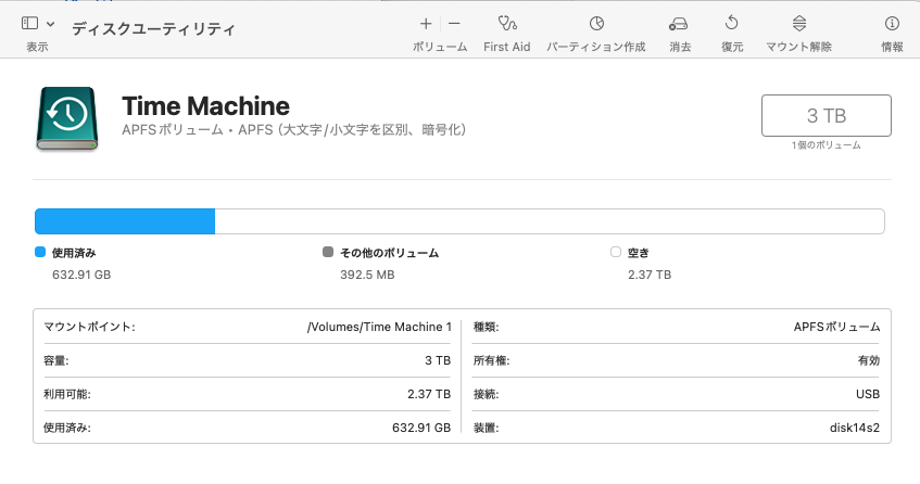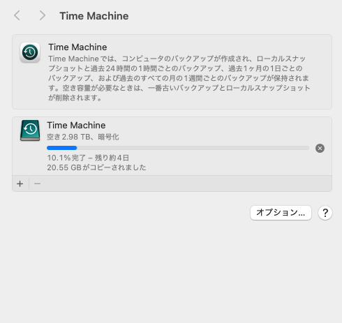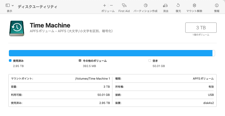 新たに3Tの外付けを繋げてバックアップをとろうとしたのですが、