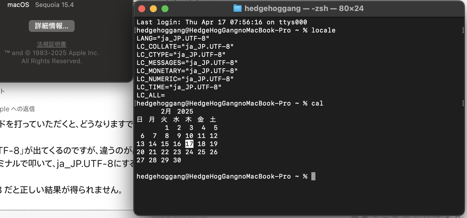 Mac - ターミナルにて2ヶ月前のカレンダーが表示されます