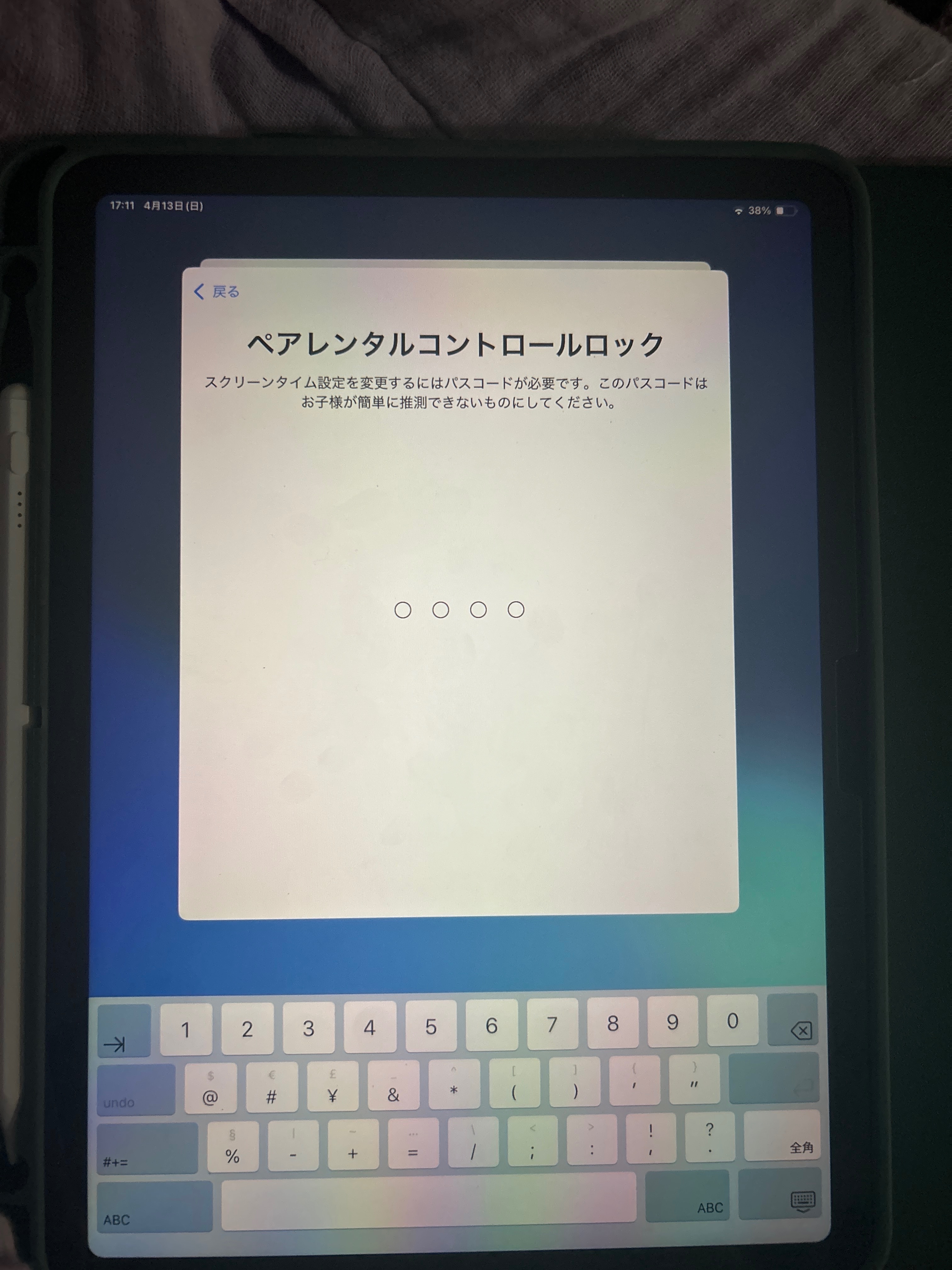 子どものiPad Airを新規で購入し初期設定中です。指示に従って進んでいき、スクリーンタイムを入力し