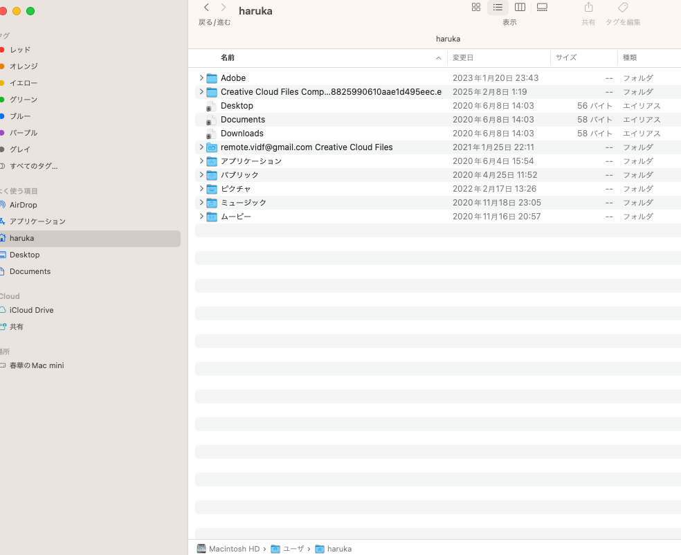 また、おそらく該当フォルダそのものを削除してしまっているため、MacintoshHD>ユーザ>個人名からABCに入ろうとしても、エイリアスだけがある状態。