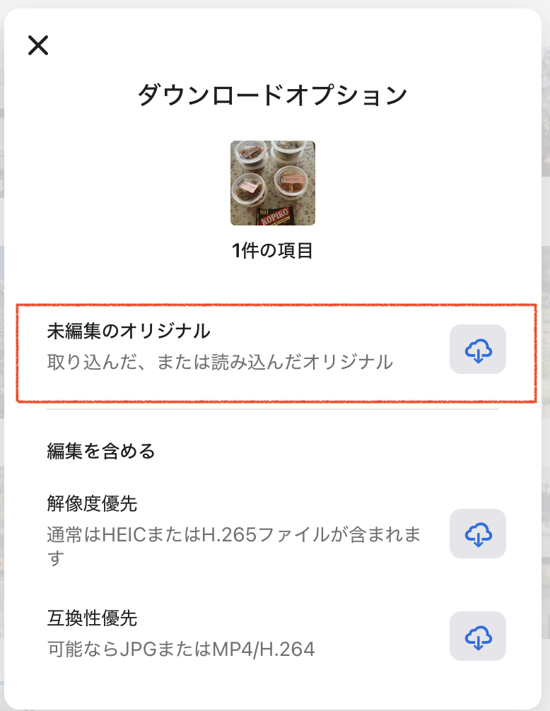 iCloudからダウンロードしても