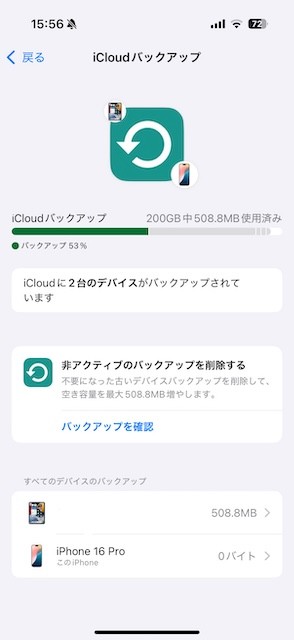 iPhone16の方は購入したてで、バックアップはないと思います。