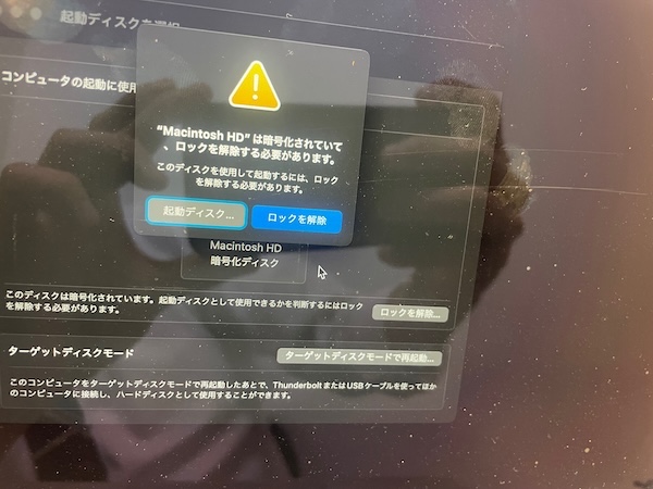 Macintosh HDは暗号されていて、ロックを解除する必要があります
