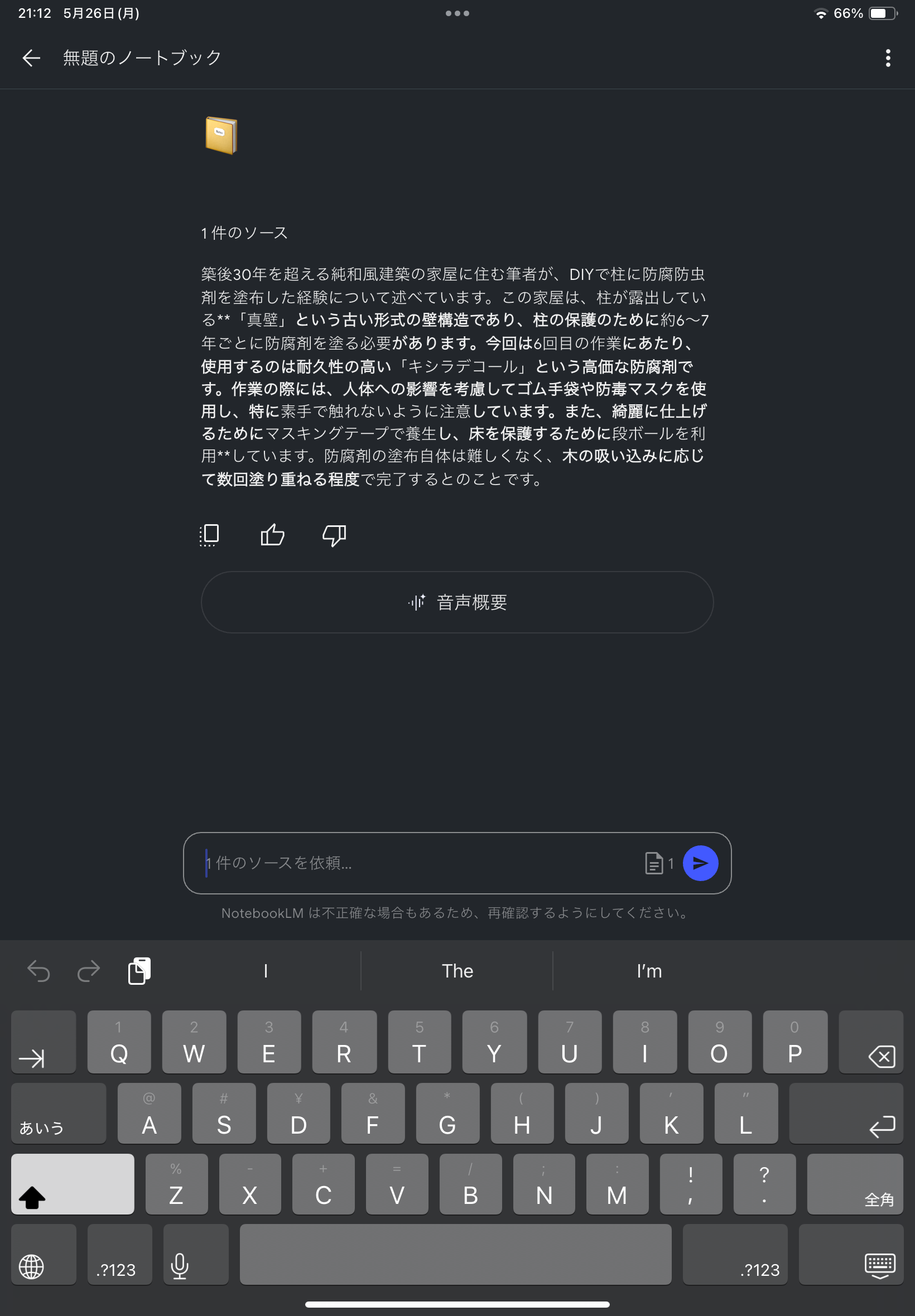 iPad(第10世代)でNotebookLMの音声での説明画面が動作しません