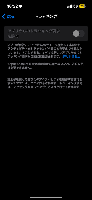 • 設定の年齢を無理矢理変更しても、トラッキング要求は許可出来ない。