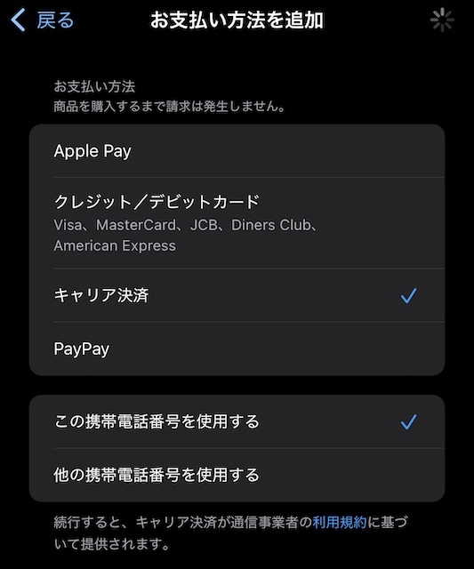誤ってキャリア決済を削除してしまい、再度設定しようとしたのですが、右上の完了ボタンを押しても再び完了が出てきて設定ができなくて困っています。