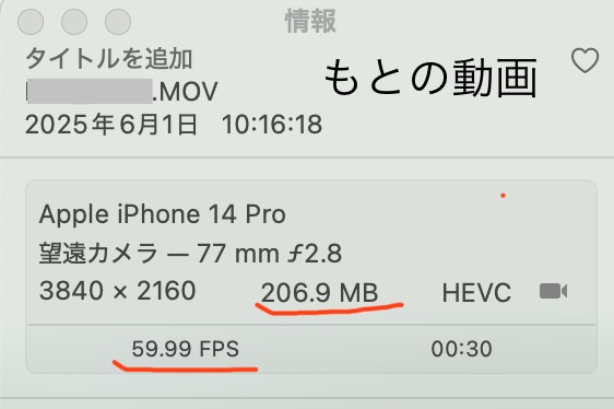 macOS 15.5 - 動画をドラッグ&ドロップで書き出すと60から30fpsに下がる