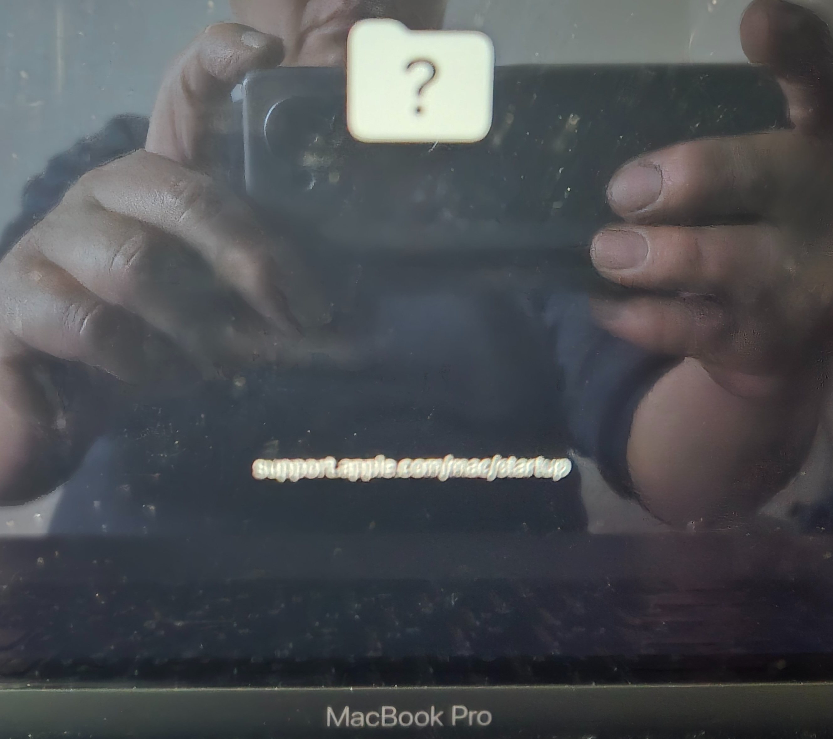 画面の状態は内蔵ディスクから起動しようとしてるけど、内蔵ディスクにシステムが入ってないために起動できない(インターネット復元に入ってない)ように見えます。