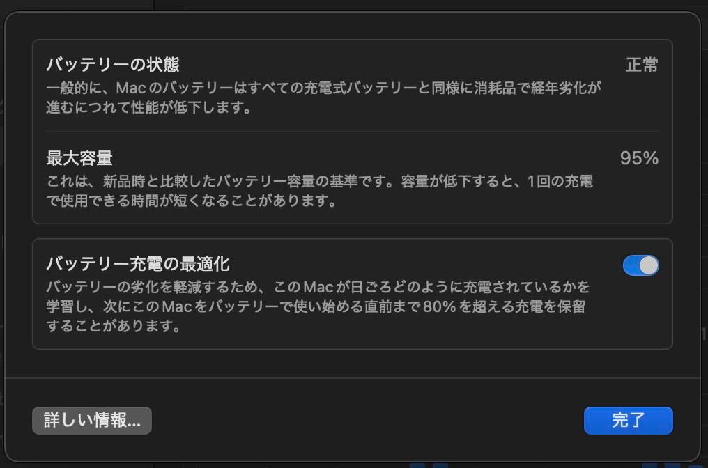 MacBook Air(M4)- バッテリーは充電停止中です」と表示されます