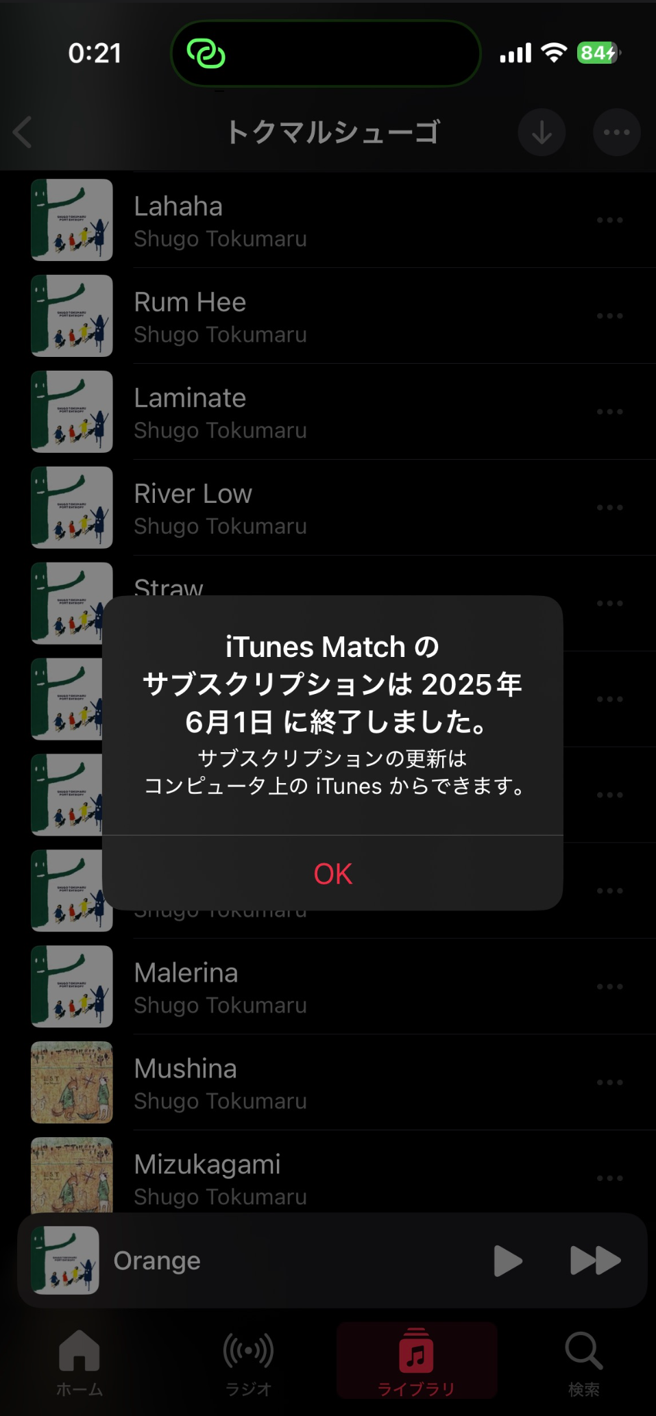 「iTunes Matchのサブスクリプションは~終了しました。」と表示され聞くことが出来ません。